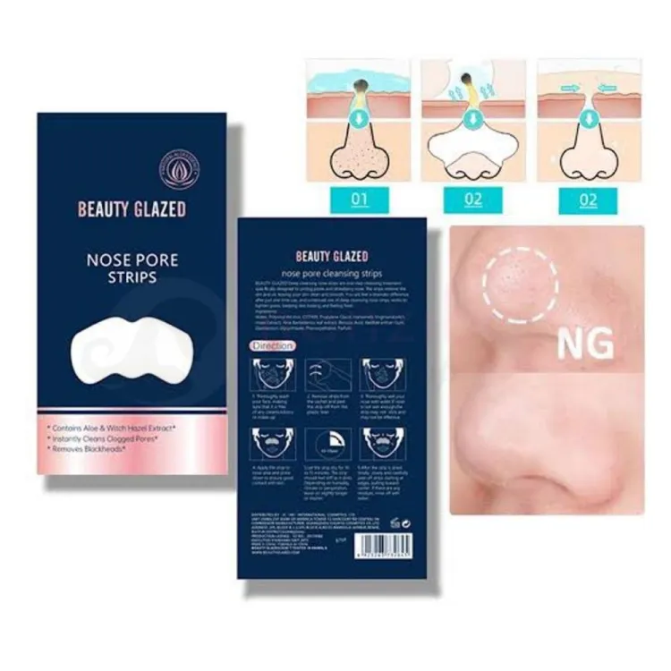 Beauty Glazed Nose Pore Strips are the ultimate solution for achieving clean, smooth, and refreshed skin. These high-quality pore cleaners are designed to tackle stubborn blackheads, excess oil, and dirt, delivering a deep cleanse that leaves your skin looking radiant. Unlike other nose strips, Beauty Glazed offers a powerful yet gentle formula, making it suitable for all skin types, including sensitive skin. Crafted with premium ingredients like water and titanium dioxide, these strips are hypoallergenic and ensure effective blackhead removal without irritation. In just 10-15 minutes, you can unclog pores and remove impurities, giving your nose a polished, fresh appearance. The strips are easy to apply and remove, thanks to their balanced adhesive strength, which sets them apart from competitors. Whether you're dealing with occasional blackheads or seeking a regular skincare routine, Beauty Glazed Nose Pore Strips provide quick, visible results. Perfect for the T-zone, each pack contains 10 strips, each weighing 2g, offering a convenient and effective skincare solution. Follow us on Facebook for more skincare tips and updates.