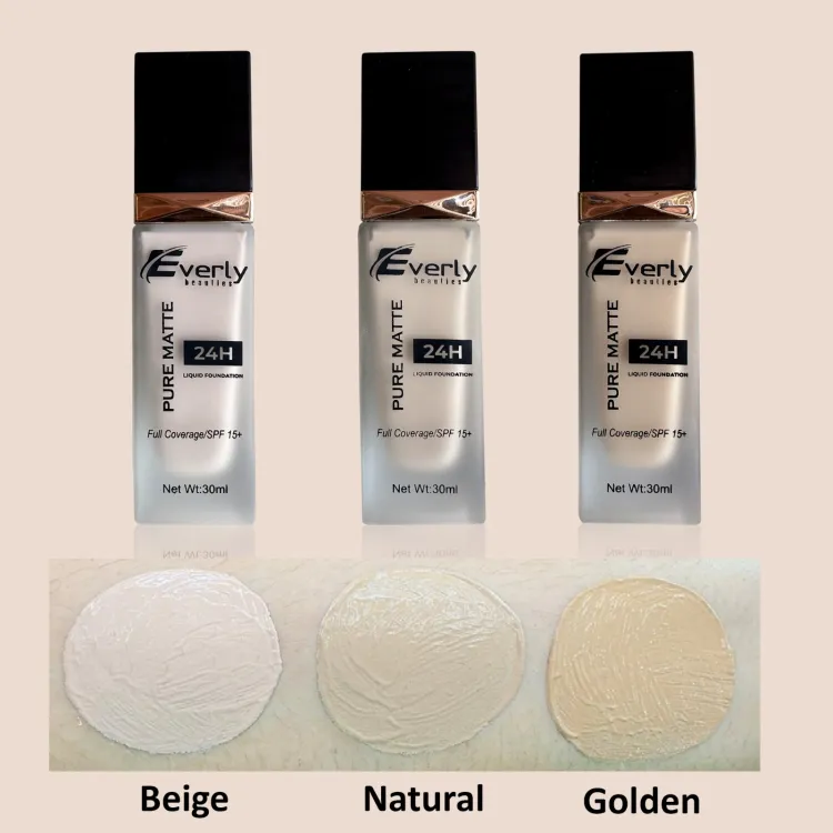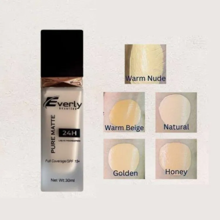 Achieve a flawless, camera-ready look with the Everly Pure Matte Full Coverage Foundation in Natural – your ultimate solution for smooth, even-toned, and shine-free skin. Designed for beauty lovers who demand long-lasting wear and professional results, this foundation offers high coverage with a soft matte finish that stays put all day.The creamy yet lightweight formula blends seamlessly into the skin, concealing imperfections, blemishes, and discoloration while maintaining a breathable, natural feel. Perfect for all skin types, especially oily and combination skin, it helps to control excess oil and reduces the appearance of pores without clogging them.