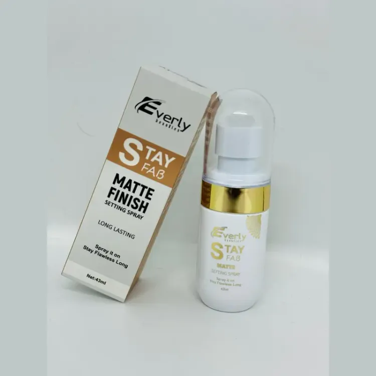The Everly Beauties Stay Fab Matte Finishing Spray is a lightweight and long-lasting setting spray designed to lock your makeup in place while delivering a matte finish. Formulated to control excess oil and shine, this spray keeps your makeup looking fresh and flawless all day. Its quick-drying, non-sticky formula ensures that your makeup stays intact without smudging or fading, making it perfect for all-day wear. Ideal for all skin types, especially oily or combination skin, this finishing spray is a must-have for a shine-free, perfected look.