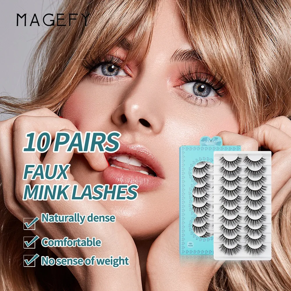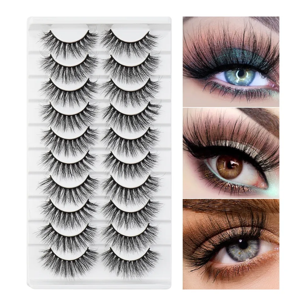 10 Pairs False Eyelashes 6D Super Fluffy Wispy Faux Mink Eyelashes Cat Eye Effect Dramatic Lashes Eyelash Extension Makeup