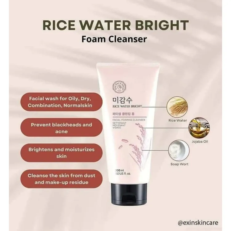 Looking for a rice water bright cleansing foam? The Face Shop Rice Water Bright Foaming Cleanser! This popular K-beauty product is enriched with rice water, a natural ingredient known for its brightening and nourishing properties.